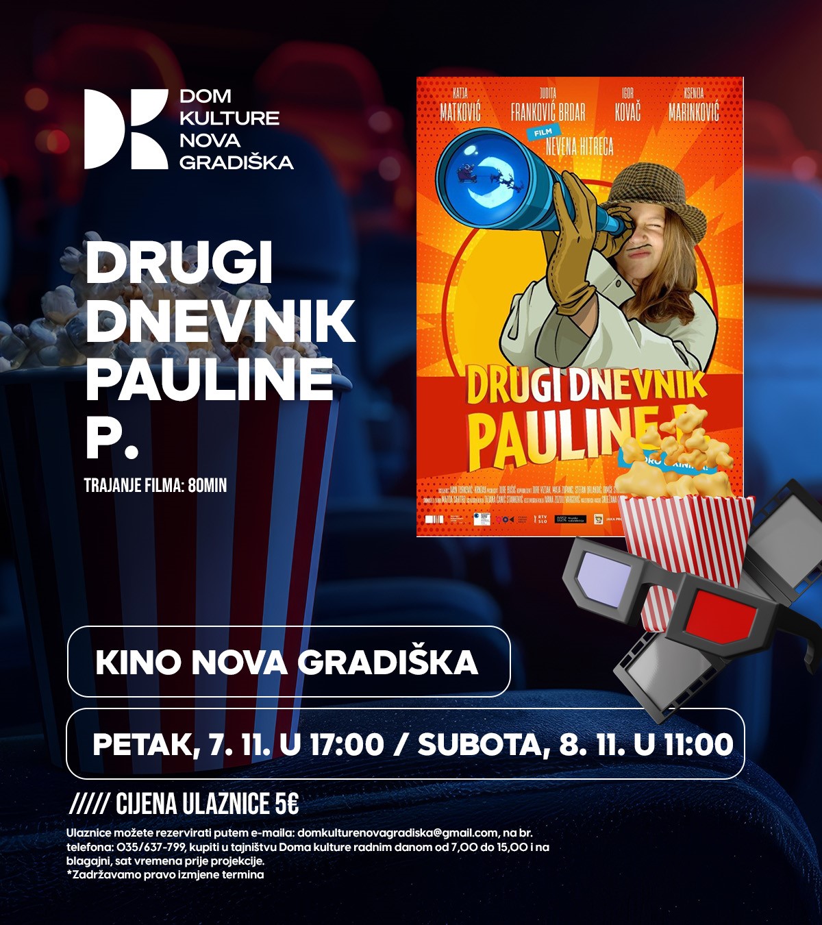 Više...DRUGI DNEVNIK PAULINE P. PETAK, 7. 11. U 17:00 SUBOTA, 8. 11. U 11:00 REŽIJA: N. Hitrec ULOGE: K. Matković, J. Švarc, A. Dunda, J. Franković Brdar ŽANR: dječji TRAJANJE FILMA: 80 min [...]