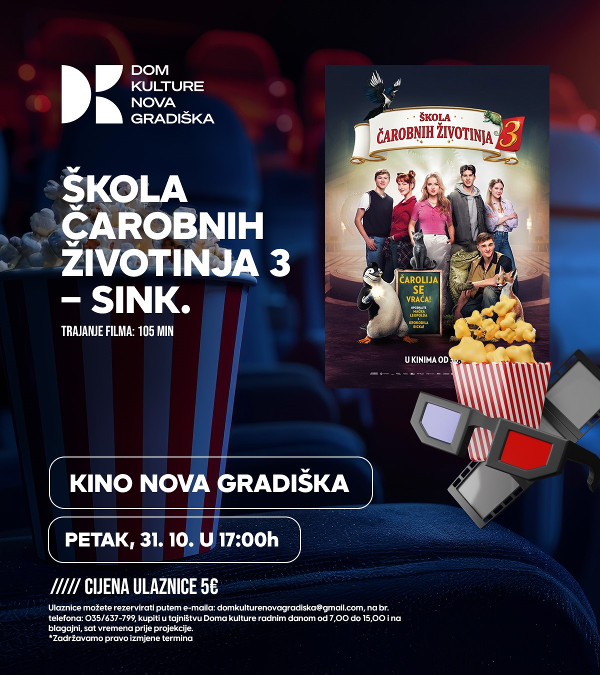 Više...ŠKOLA ČAROBNIH ŽIVOTINJA 3 – SINK. PETAK, 31. 10. U 17:00 IZVORNO IME: Die Schule der magischen Tiere 3 REŽIJA: Sven Unterwaldt Jr. ULOGE: Emilia Maier, Loris Sichrovsky, Emilia Pieske ŽAN [...]