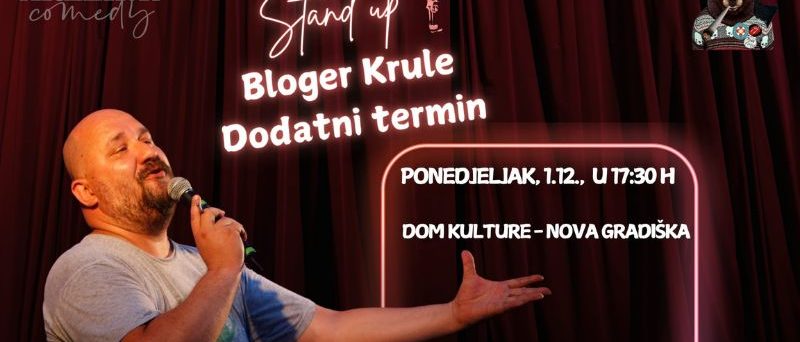 U ponedjeljak 1. 12. u 17:30 i 20:00 u Domu kulture Nova Gradiška dva stand up nastupa održat će Jadranko Hodak, legendarni Bloger Krule. Pripremite se za epicentar humora!
