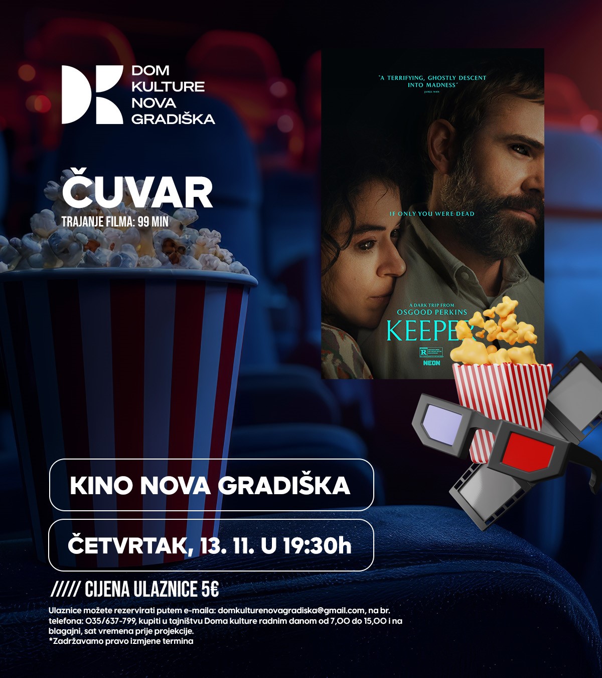 Više...REVIJA RECENTNOG HRVATSKOG FILMA U DOMU KULTURE Dragi posjetitelji, pozivamo vas u Dom kulture na filmski program “Revija recentnog hrvatskog filma” koji će se održati od 10. do 20. 11. 2025. Revija d [...]