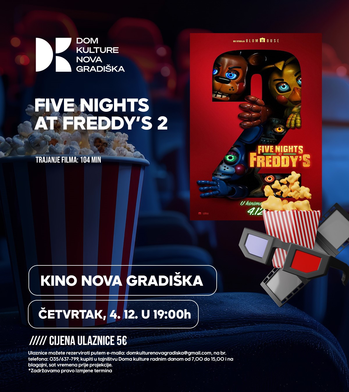 Više...FIVE NIGHTS AT FREDDY’S 2 ČETVRTAK, 4. 12. U 19:00 IZVORNO IME: Five Nights at Freddy’s 2 REŽIJA: Emma Tammi ULOGE: Josh Hutcherson, Elizabeth Lail, Piper Rubio ŽANR: horor TRAJANJE FILMA: [...]